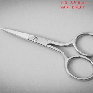 Foarfeca pentru broderie cu dimensiunea de 9 cm,varf drept, ofera precizie mare la taiere,astfel se pot executa taieturi si decupaje fine .