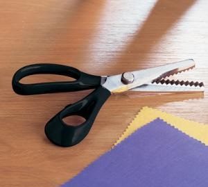Foarfeca zig-zag ,dimensiune 8" - 20.5 cm,se utilizeaza cu preponderenta la taierea mostrelor dar si la taierea marginilor decorative .Se pot taia tesaturi,hartie,piele etc. Foarfeca este din otel inoxidabil, nichelata la exterior.