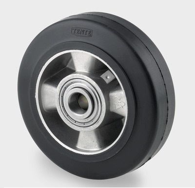 Jantă din aluminiu, suprafaţă de rulare din cauciuc elastic, rulment de precizie.