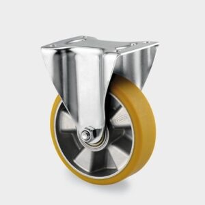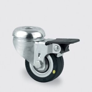 antă din polipropilenă, suprafaţă de rulare din cauciuc gri tip prene (cauciuc termoplastic), non-marking, rulment plan (bucşă antifricţiune).